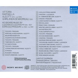 Zwischen den Madrigalen steht Cembalomusik von Ercole Pasquini (1550-1619), dem Musiklehrer von Vittoria Raffaella Aleotti und von Luzzasco Luzzaschi (1545-1607), einem der absoluten Tasten-Virtuosen seiner Epoche.